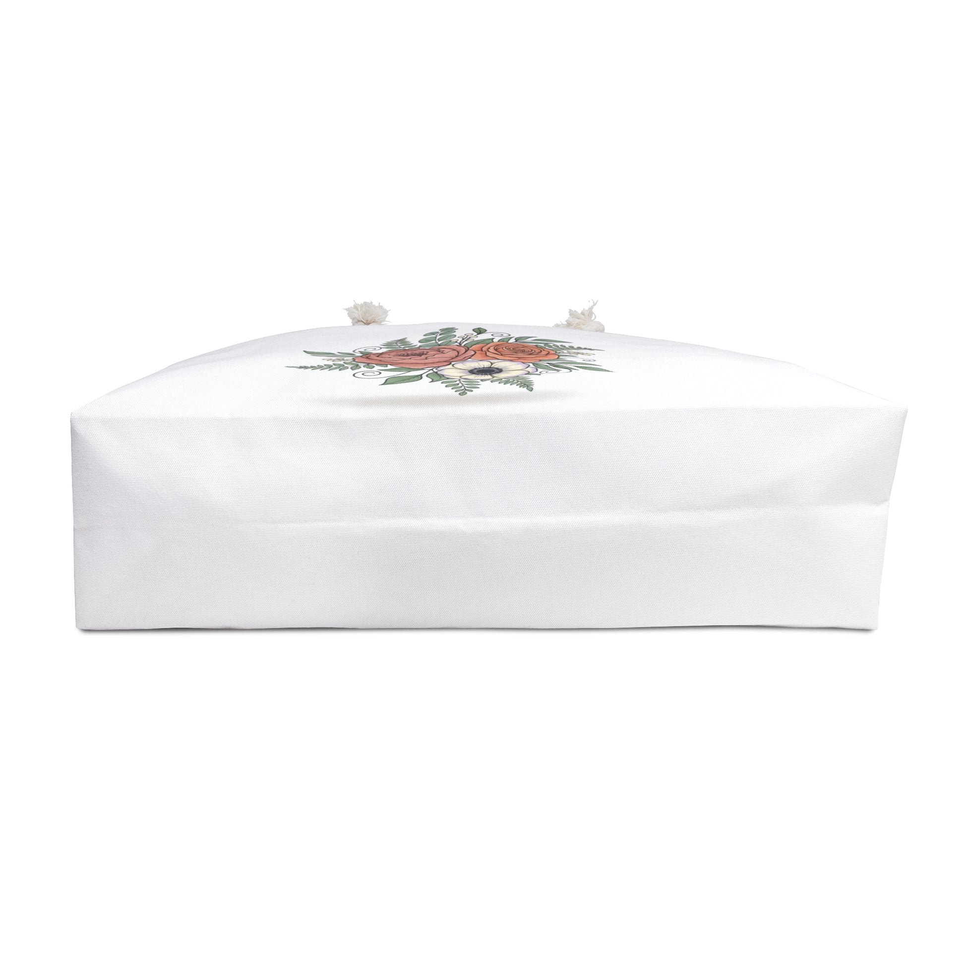 Lightweight and roomy, this floral weekender brings quiet charm to short escapes and everyday runs. Soft spun polyester holds the printed bouquet without creases, while the cream rope handles and gold grommets add a tactile, vintage-inspired touch. Inside, a breathable cream sheeting lining protects belongings and keeps the bag looking fresh. The T-bottom gives structure so shoes, sweaters, and toiletries sit neatly. Easy to grab and carry, it becomes the kind of bag you reach for when you need something pretty that actually works.